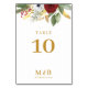 Bold Elegant Red Gold Floral Monogram Wedding Table Number