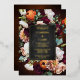 Bold eucalyptus wild flower burnt orange, modern dark moody wedding foil invitation.