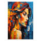 This Bold Expressionist Female Portrait photo enlargement art print is a mesmerising display of rich textures, vivid colours, and dynamic brushstrokes. AI-generated, it draws inspiration from the Expressionist movement, using bold colour contrasts to convey deep emotion and a sense of inner contemplation. The woman’s face, set against a swirling background of fiery reds, oranges, blues, and yellows, captivates with its abstract yet soulful gaze. The energetic strokes and vibrant colour palette evoke feelings of passion, strength, and mystery. What makes this piece unique is its ability to merge classical Expressionism with a contemporary digital twist. Created by AI, it offers an innovative take on human emotion, making it perfect for modern art enthusiasts and lovers of avant-garde decor. This artwork works beautifully in living rooms, offices, or creative spaces, bringing a sense of inspiration and artistic flair. It's also an excellent choice for art-themed gifts, special occasions like birthdays or housewarmings, or for those who appreciate the emotional depth of Expressionist art.