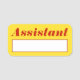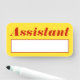 This attention-grabbing and eyecatching volunteer reusable dry-erase name tag style badge design features the message "Assistant". It also features an area where a volunteer’s name could be written using a dry-erase marker. A nametag-style badge like this could possibly be worn to indicate that a person is an authorised volunteer or assistant at an event. [~Z0000359]