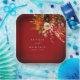 Bold Fall Floral Over Burnt Red Wedding Paper Plate