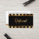 This elegant design features striking faux gold foil and bold black accents. Top and bottom borders of a bold, vertical stripe appear above and below a wide black band across the centre, which is bordered in double gold strips. In the centre of the design, in a pretty, modern script font, is a typography graphic overlay that says "Referral". This graphic text layer was embellished with the same gold effect as I used in the stripes and borders. On the back I've set up all the template fields you will need to offer the details and terms to your clients. Use the spaces provided to add your own details, and make any wording changes needed. You may also click to customise further if you'd like to change fonts, sizes or re-positions of any elements. // Ideal for salon owners, hair stylists, beauticians, manicurists and nail technicians, makeup artists, massage therapists, personal coaches, trainers, and many others in healing and personal service industries who appreciate honouring business referrals. // Please don't hesitate to reach out if you have special requests or need customising assistance. // Designed by Melody Watson for Paper Muserie.