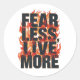 Ignite your spirit and live life to the fullest with this powerful "Fear Less, Live More" graphic. The text features a bold, fiery texture, creating an energetic and edgy look that's full of passion. It's the perfect motivational statement for anyone ready to embrace adventure and overcome their fears.