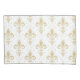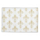 Elegant gold fleur-de-lis seamless pattern over a custom white background.