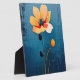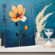 This striking AI-generated floral artwork tabletop plaque with easel art print features a bold and abstract depiction of a vibrant flower against a deep blue background. The large, bright petals with hues of yellow and orange pop vividly, creating a dynamic contrast with the muted, textured backdrop. The minimalist design of the stem and buds adds a modern, abstract touch, while the colour palette evokes warmth and energy. This piece effortlessly blends contemporary art with nature, making it a captivating centerpiece for any room. This modern floral artwork stands out with its unique combination of vibrant colours and minimalistic design. The textured blue background adds depth and character, giving this piece an elegant yet bold feel. It’s ideal for living rooms, bedrooms, and workspaces that need a splash of colour and artistic flair. This artwork is perfect for brightening up homes and workspaces, making it a versatile addition to modern or eclectic interiors. It's also an excellent gift for housewarmings, birthdays, or special occasions like Mother's Day or springtime celebrations.