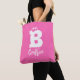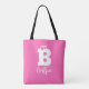 Bold fun typography monogram name pink white tote bag