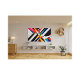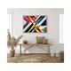 A striking geometric abstract design featuring bold, angular shapes in vivid colours. The dynamic combination of black, white, red, yellow, and blue creates a modern and energetic visual statement, perfect for decor, accessories, and fashion.