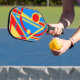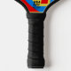 Bold Geometric Abstract in Red, Blue, and Yellow Pickleball Paddle