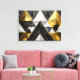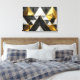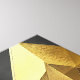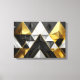 A striking geometric painting combining black, white, and gold triangles, accented with metallic textures. This modern artwork adds a touch of luxury and sophistication to any room.