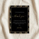 Add a touch of luxury to your wedding reception with these personalised thank you table cards, featuring an elegant black background and a sophisticated gold fern leaf pattern. Each card is beautifully styled with graceful script and modern typography, creating a refined atmosphere perfect for family and friends. Place these cards at each table setting to express heartfelt gratitude and make every guest feel special customise with individual names and appreciation messages. The printed gold effect lends a chic, glamourous look, ideal for a stylish celebration honouring your newlywed journey.
