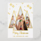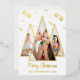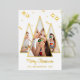 Wish your friends and family happy holidays with this custom gold Christmas tree photo frame card with a starry backdrop.
