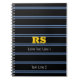 Bold Gold Monogram, Name, Blue Lines on Black Notebook