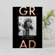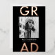 Announce your graduation in style with our modern photo graduation announcements! The trendy graduation announcements display your graduate's photo with "Grad" in real rose gold foil lettering against a solid black background. Personalise the front of the black and gold graduation announcements by adding the graduate's name, school name, and graduation year. The announcement reverses to display a black geometric pattern with a white background.
