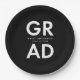 Custom graduation plates featuring "Grad" in bold white lettering with a black background or color of your choice. Personalize the graduation paper plates by adding the graduate's name and graduation year. The personalized graduation plates are perfect for both high school and college graduation parties.