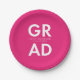 Custom graduation plates featuring "Grad" in bold white lettering with a hot pink background or color of your choice. Personalize the graduation paper plates by adding the graduate's name and graduation year. The personalized graduation plates are perfect for both high school and college graduation parties.