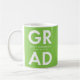 Modern photo graduation coffee mug featuring "Grad" in bold white lettering with a lime green background or colour of your choice. Personalise the graduation mug by adding the graduate's name, graduation year, and photo. The coffee mug makes for a great personalised graduation gift for both high school and college graduates!