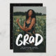 This one-photo graduation announcement features a full-frame vertical photo with the word "grad" in bold brushy type in white. This stylish card also features room for the graduate's name, school and year and any other details you want to share. The back is a coordinating black dotted with white confetti. Makes a great way to celebrate a graduation and announce the news to friends and family. This cool card also coordinates with the party supplies and decor in the Lea Delaveris Design Bold Graduate collection.