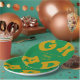 GRAD in bold gold lettering curves around the edges of these green graduation party paper plates - available in 2 sizes. Congratulations above the name of your graduate and the Class of below. The perfect addition to your table decor for upcoming grad parties. **TIP: Click on CUSTOMIZE button; click on COLOR box on top right; enter your colour hex code in the #xxxxxx box to match your school colours. SEE ENTIRE COLLECTION of pre-done colour combinations and more in our store.