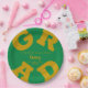 Bold GRAD Personalised Gold on Green Graduation Paper Plate