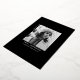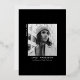 Trendy, modern graduation thank you card featuring the graduate's photo with "Thanks" in bold rose gold foil lettering and a black background. Personalise the front of the photo graduation thank you card by adding the graduate's name, school name, and graduation year. The back of the thank you card features space for your typed or handwritten message with a black and white geometric pattern.