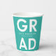 Personalized graduation paper cups featuring "Grad" in bold white lettering with a turquoise background or color of your choice. Personalize the graduation paper cups by adding the graduate's name and graduation year. The turquoise graduation paper cups are perfect for both high school and college graduation parties.