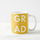 Modern graduation coffee mug featuring "Grad" in bold white lettering with a yellow background or colour of your choice. Personalise the graduation mug by adding the graduate's name and graduation year. The coffee mug makes for a great personalised graduation gift for both high school and college graduates!