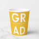 Personalized graduation paper cups featuring "Grad" in bold white lettering with a yellow background or color of your choice. Personalize the graduation paper cups by adding the graduate's name and graduation year. The yellow graduation paper cups are perfect for both high school and college graduation parties.