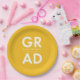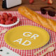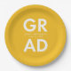 Custom graduation plates featuring "Grad" in bold white lettering with a yellow background or color of your choice. Personalize the graduation paper plates by adding the graduate's name and graduation year. The personalized graduation plates are perfect for both high school and college graduation parties.