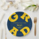 Bold GRAD Yellow on Blue Graduation Paper Plate