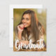 Graduate is written in white handwritten script over your senior portrait photo makes a chic, modern graduation announcement card. Customise with your name and high school or university class of 2025 under the bold typography and add your personal details on the back of these elegant text overlay graduate cards.