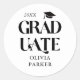 Simple graduation party favour sticker featuring typography text that says "Graduate" in a bold font with an illustration of a graduation cap.