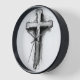 Bold, pencil drawn Christian Cross on a stylish wall clock for your home,