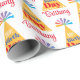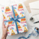 Party hat wrapping paper customised name to wrap all you birthday gifts in. Being Bold red, blue, orange, yellow and purple graphic shapes with words will make it sure to get noticed.