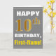 Bold, Gray, Faux Gold 10th Birthday w/ Name Card