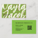 Bold Green Brown Check Pattern QR Code Handmade Business Card