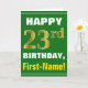 Bold, Green, Faux Gold 23rd Birthday w/ Name Card