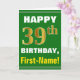 Bold, Green, Faux Gold 39th Birthday w/ Name Card