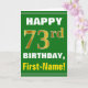 Bold, Green, Faux Gold 73rd Birthday w/ Name Card