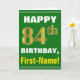 Bold, Green, Faux Gold 84th Birthday w/ Name Card