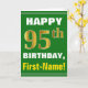 Bold, Green, Faux Gold 95th Birthday w/ Name Card