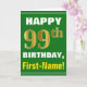 Bold, Green, Faux Gold 99th Birthday w/ Name Card