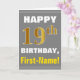 Bold, Grey, Faux Gold 19th Birthday w/ Name Card