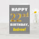 This simple birthday-themed greeting card design features a warm birthday wish like "HAPPY 22nd BIRTHDAY, Andrew!" on the front, in bold text on a grey (grey) coloured background. The birthday number has a faux/imitation gold-like colouring look. The name on the front can be customised. The inside features a birthday message that can be personalised. A greeting card like this could be a fun way to deliver birthday wishes to somebody who is celebrating their twenty second birthday. [~Z0000283]