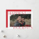 Our bold happiest holidays photo card features bright red type surrounding your photo. The back is perfect for adding more text or photos. You can even change the colour!