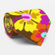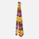 Retro brown, floral neck tie with a big, bold print of colourful hibiscus flowers. Illustrated design in colours of yellow, orange and pink make the perfect accessory for tropical wedding groom and groomsmen. Choose differing background colours for each of the groomsmen and ushers.