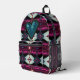 Dare to be different with this bold, abstract gemstone-inspired backpack. Originally based on a garnet, the design has been transformed into a mesmerising, mirror-tiled pattern with radiant hot pinks, deep blacks, and shimmering blue-grey highlights. A translucent magenta stripe glows like light shining through crystal, while angular geometric shapes ascend in icy hues. Visually dynamic and utterly unique, this school book bag is made for those who reject the ordinary in favour of statement-making style. A faux sequin heart patch adorns the front.