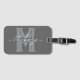 Gray background with monogram and family name in center of tag. Colors can be changed.