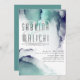Chic Alcohol Ink Watercolor Wedding Invitation - Flowing fluid wet alcohol ink design in bold colours of navy blue, pale jade and a hint of mint green. An avant garde appeal with the offset modern text for your wedding details all in an easy to customise wedding template.