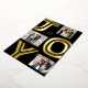 Spread JOY with this bold modern holiday photo card. This unique festive design features three photos around fun gold letters spelling JOY. This cool Christmas card is great for family photos, couples, babies, pets and more. The back is a matching black with a speckle and also includes room for a custom message, family newsletter update or it can be left blank. Find similar designs and more colours in the Lea Delaveris Design Bold Joy collection.
