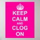Everybody knows the slogan from the WWII poster: Keep Calm and Carry On. It's redone here for clog dancers and says, "Keep Calm and Clog On." The text is done in bold white. The background color is customizable. This is a trendy design for the clogger / clogging fan. Also available on other items with worn text and an antique red background - at the store link above.